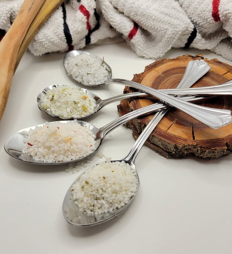 Black Mountain Syrup and Spice infuses coarse kosher salt with a few awesome flavors. This infusion process allows flavors to absorb into the salt over time. The result is a line of infused salts with incredible flavors.